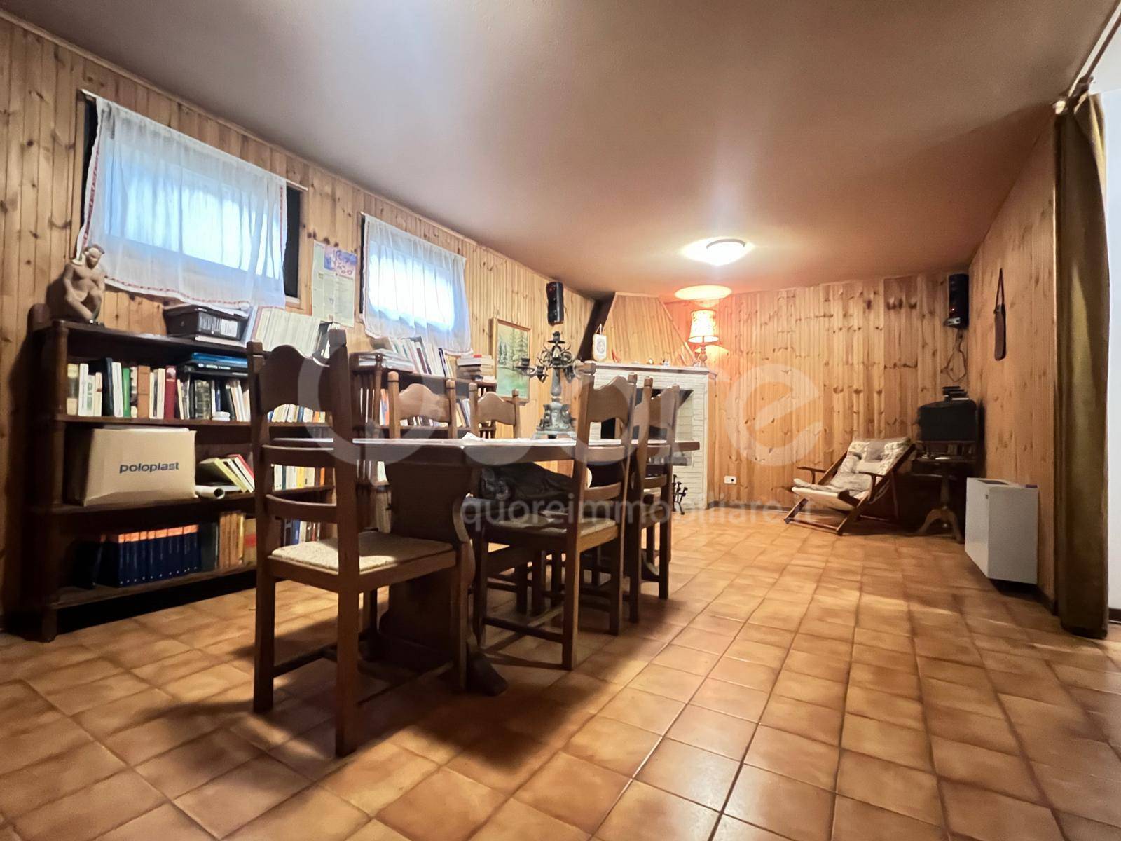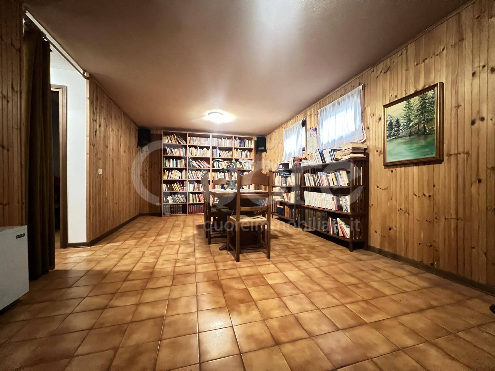 Al piano scantinato si sviluppa una taverna con camino, ricavata nella cantina, ideale per cene in compagnia o momenti di svago.