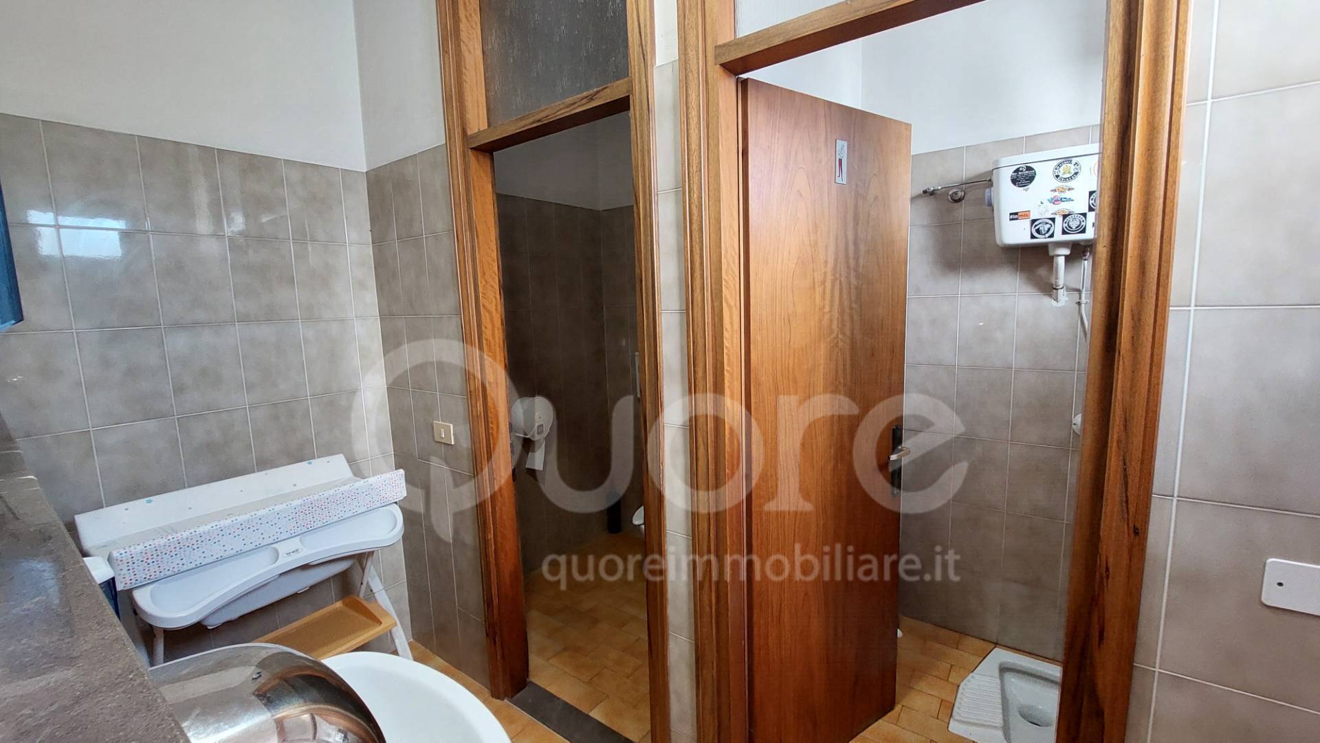 2) Il laboratorio, situato al piano terra e collegato internamente all’abitazione, comprende sala d’attesa, wc, due studi e due ripostigli, per una superficie totale di circa 65 mq, attualmente utilizzato come magazzino a servizio del bar.