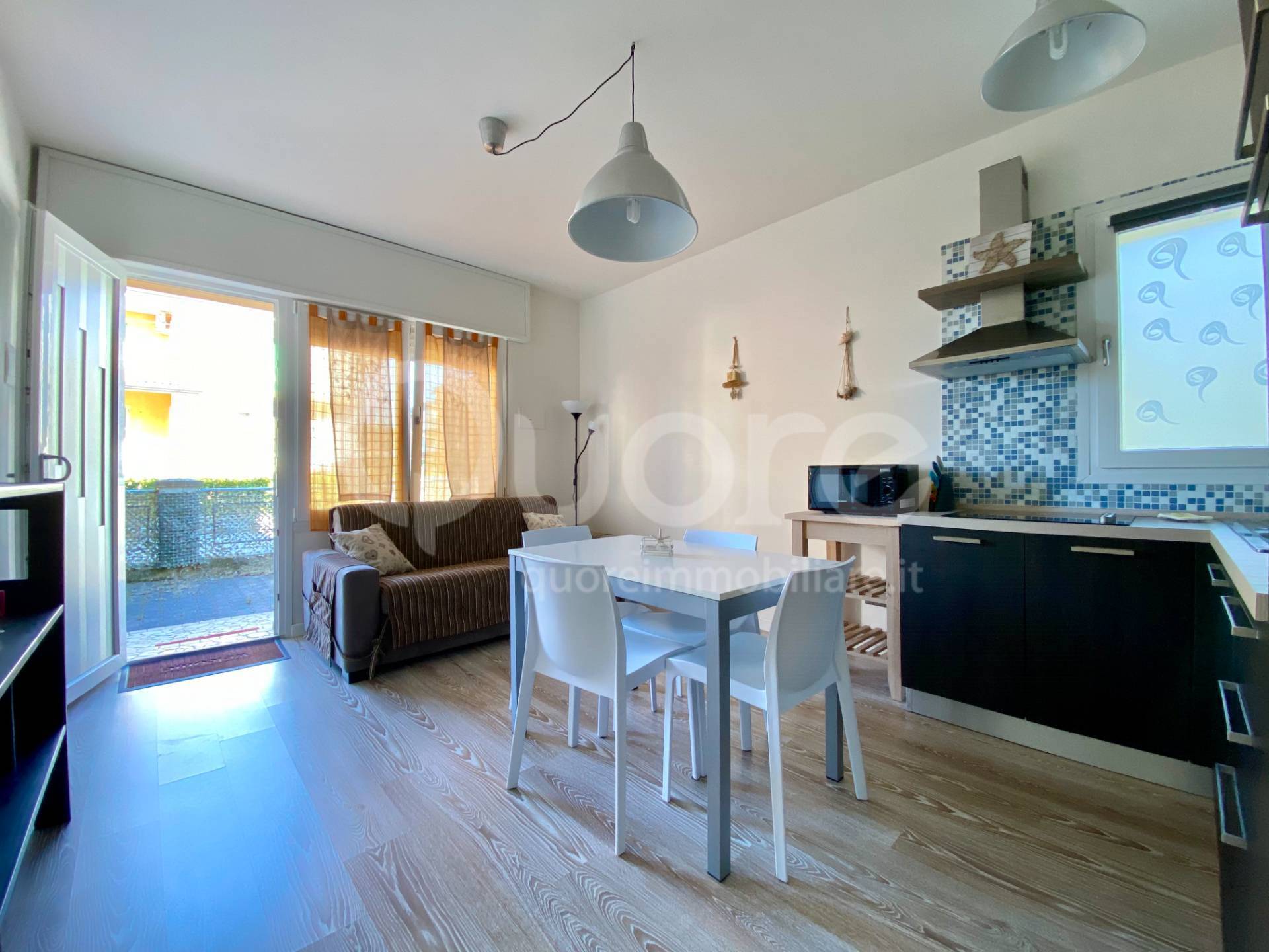 Proponiamo in affitto stagionale (dal 1 Maggio al 30 Settembre) moderno e confortevole appartamento bilocale, situato al piano terra, composto da soggiorno con divano letto, angolo cottura, camera da letto matrimoniale, bagno finestrato, piccolo scoperto di proprietà, posto auto. Con climatizzatore.