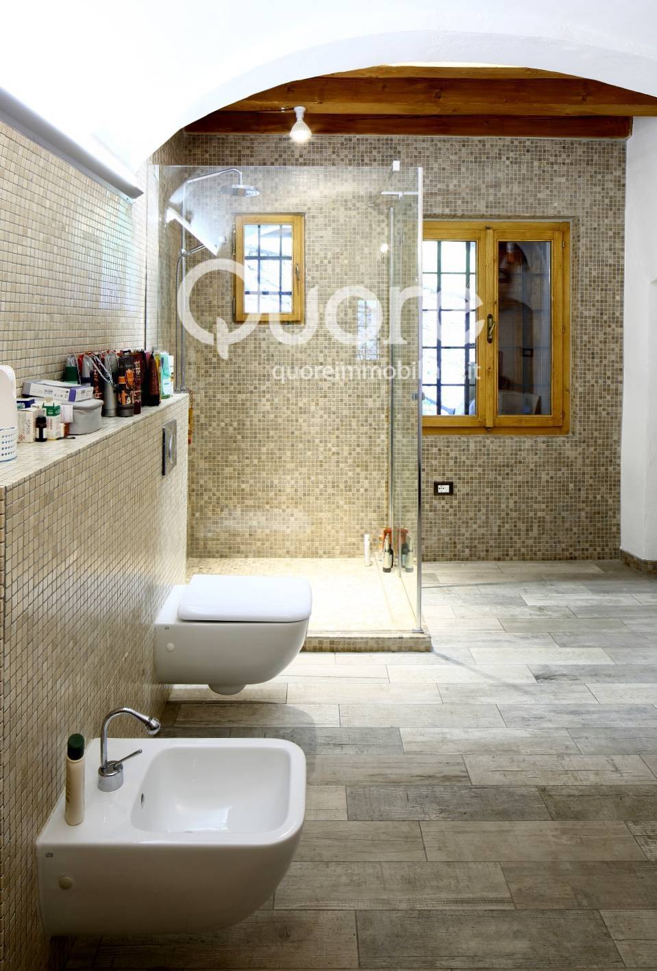 Ristrutturazione completa con materiali di pregio: pavimenti in larice, travertino e marmi naturali