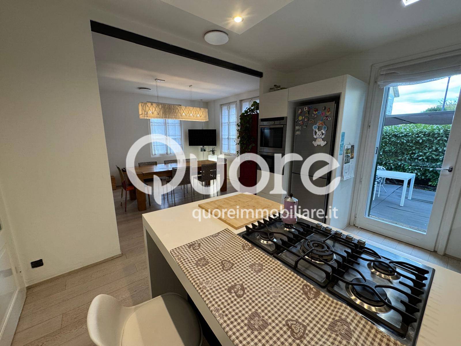 Al piano terra troviamo il salotto con uscita sul giardino, una splendida cucina arredata con ampia sala da pranzo e dispensa, dalla cucina si esce su un giardino con una pergola per pranzare e cenare d’estate.