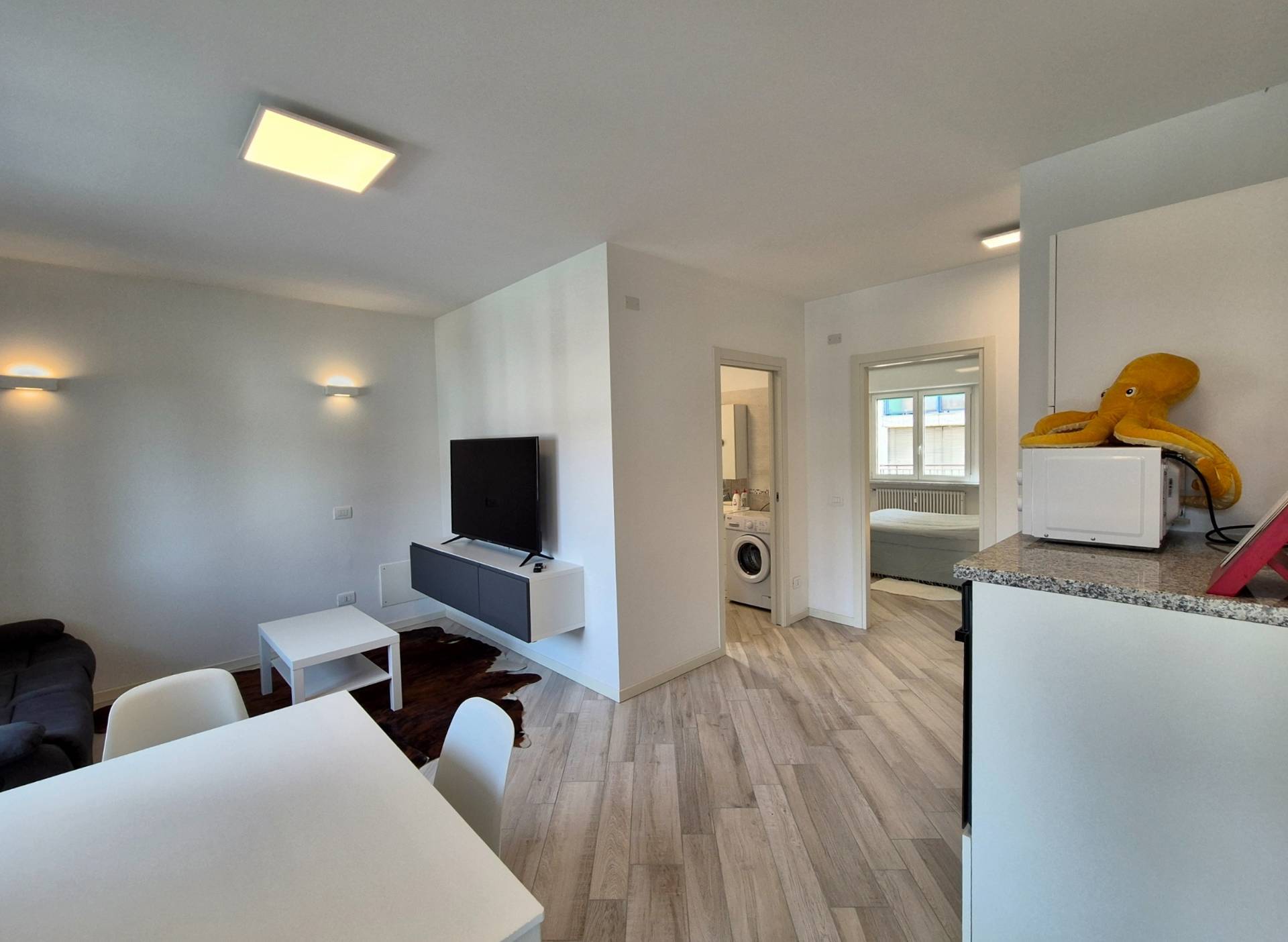 Luminoso e moderno appartamento arredato posizionato IN UNA STRADINA INTERNA a solo traffico dei residenti, situato al secondo piano e con una cantina al piano interrato.