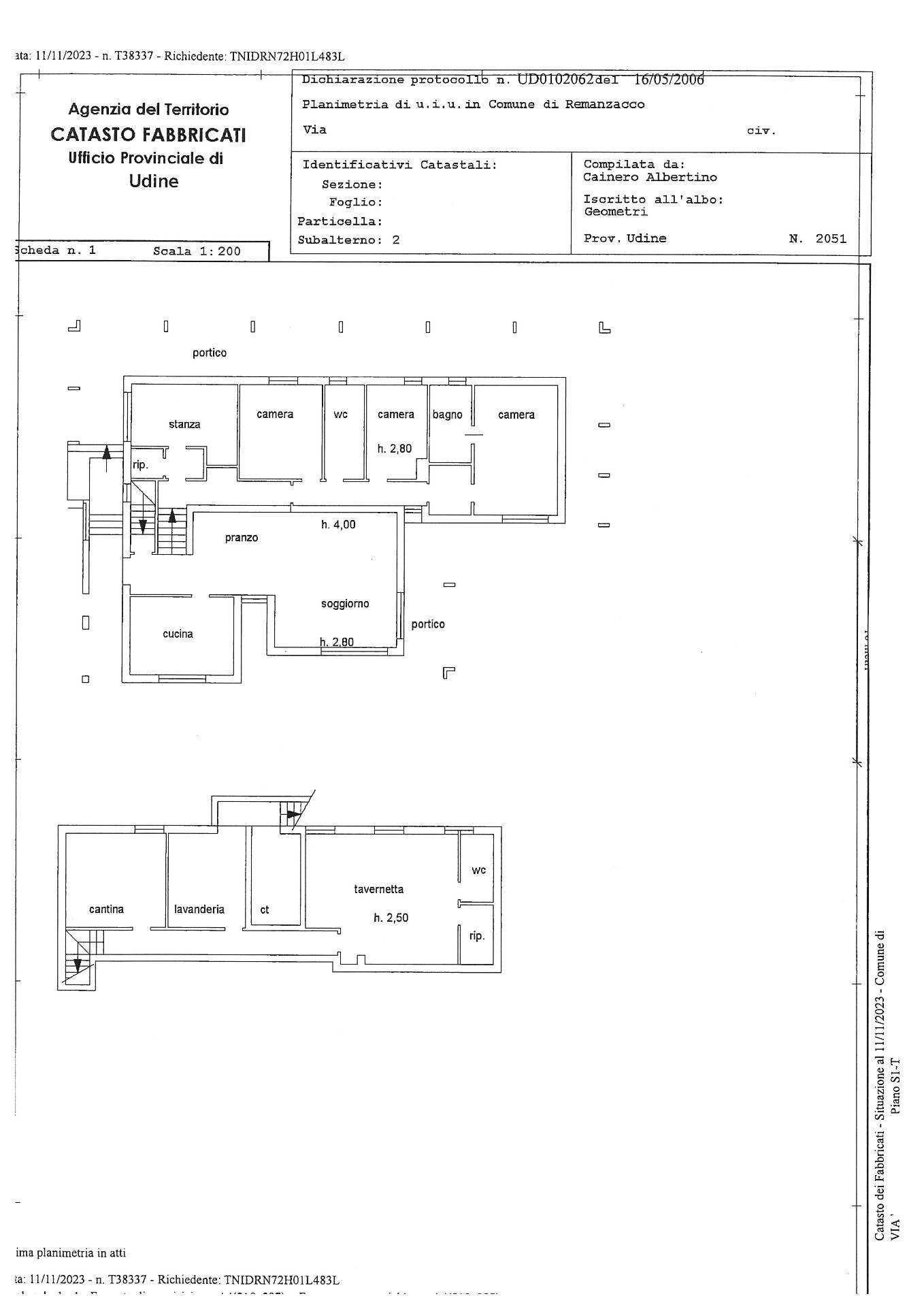 Il piano scantinato di mq 125 è adibito a taverna, cantina, lavanderia, centrale termica, servizio igienico.