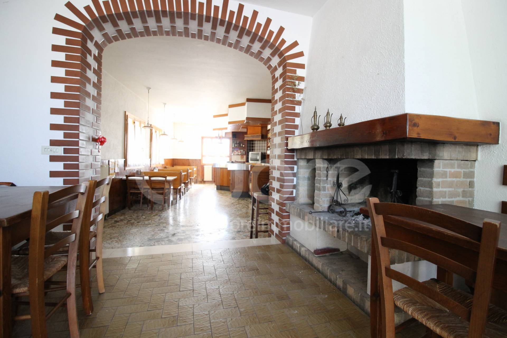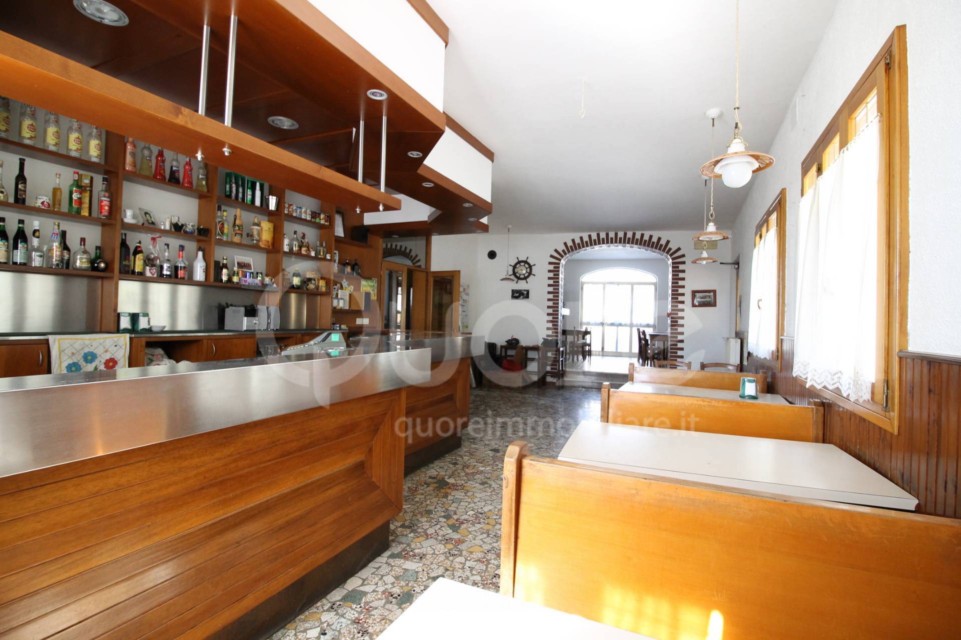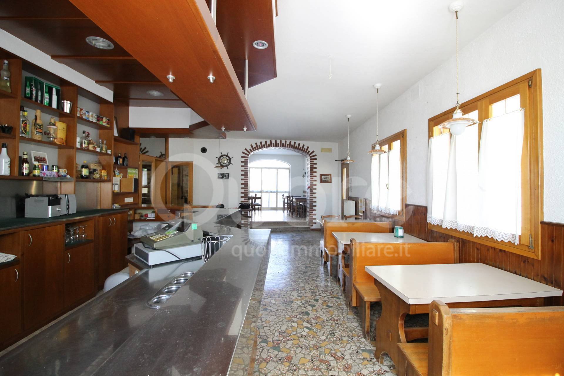 All’ingresso del locale troviamo la sala bar attrezzata e salone ristorante con doppi servizi e cucina, dal salone si accede ad un’ampia terrazza con vista sul tagliamento.