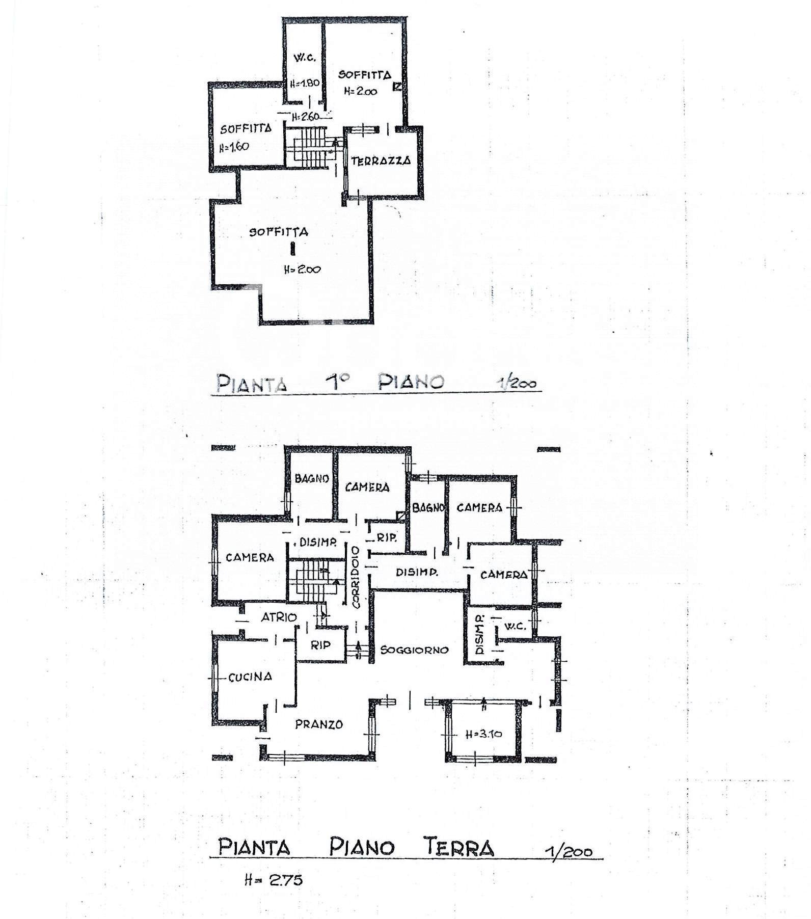 Superfici indicative: piano terra 200 mq; mansarda 130 mq; scantinato 110 mq, garage 40 mq, lotto di 2080 mq