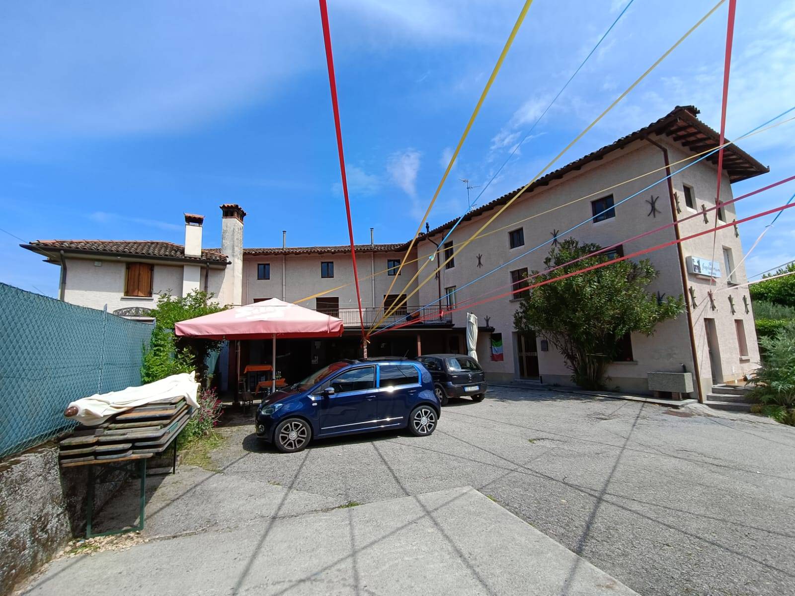 Fabbricato a tre piani fuori terra a forma di elle con corte interna e secondo corpo di fabbrica a due piani fuori terra affacciato sulla stessa corte. L’edificio principale รจ composto da locali commerciali al piano terra ad uso bar con servizi igienici e sala giochi, da locali residenziali adibiti a soggiorno, cucina abitabile e ripostiglio; al primo piano, collegato da scala interna, altri vani residenziali quali il bagno, tre camere da letto e, disposte sopra il bar, ancora altre tre stanze. Ampia terrazza. Il secondo piano composto da due ampi vani al grezzo รจ adibito a soffitta.