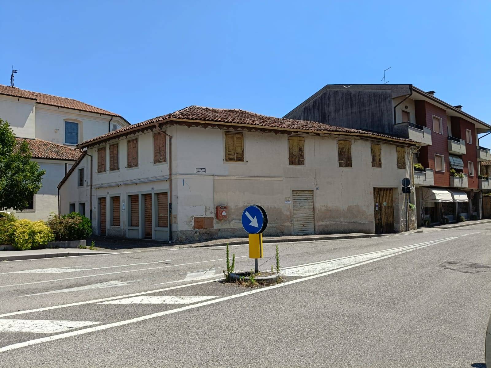 Le costruzioni si affacciano sulla via pubblica e sulla piazzetta antistante la Chiesa parrocchiale e delimitano all’interno una corte. Un lotto di terreno adiacente di forma rettangolare completa la proprietà.