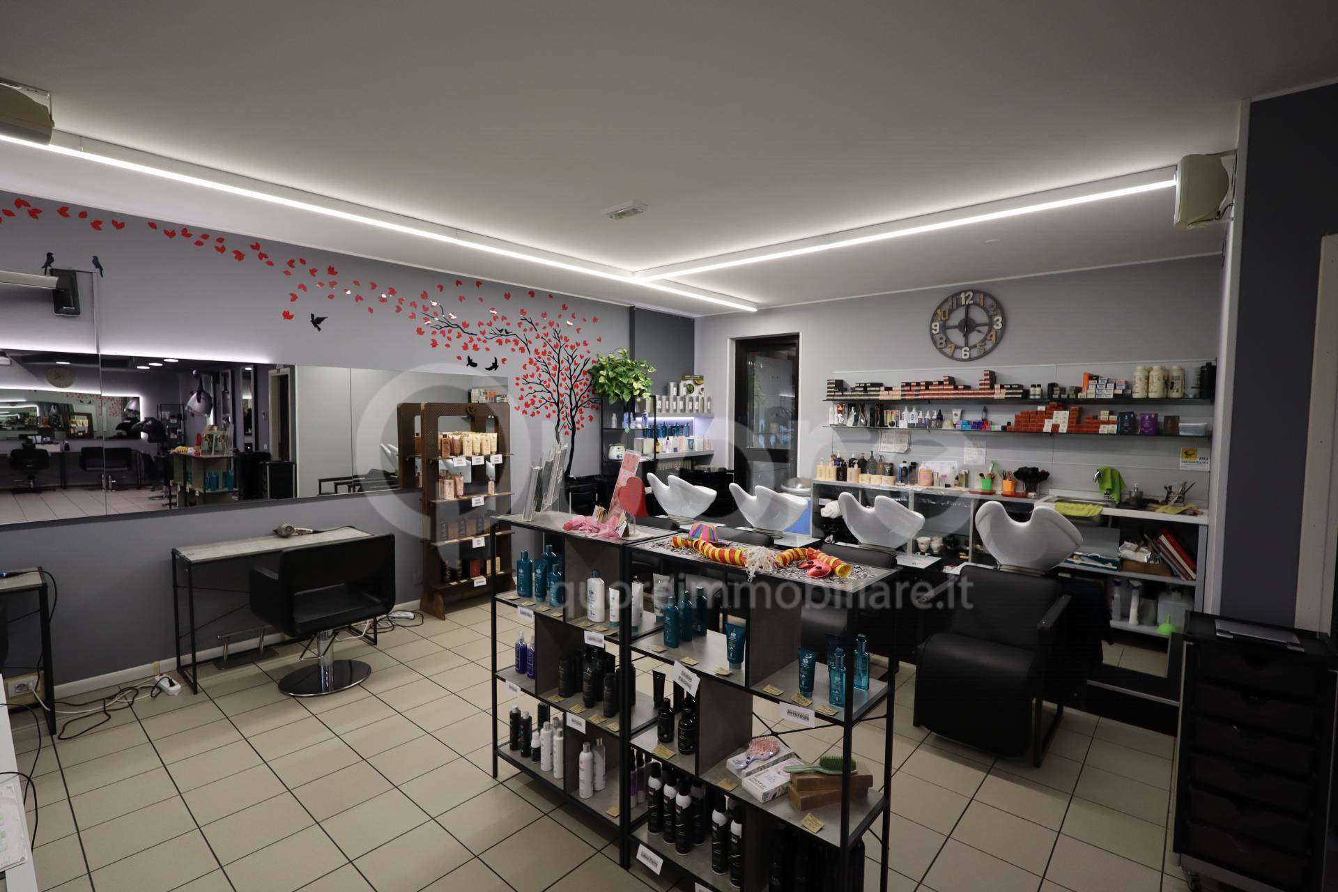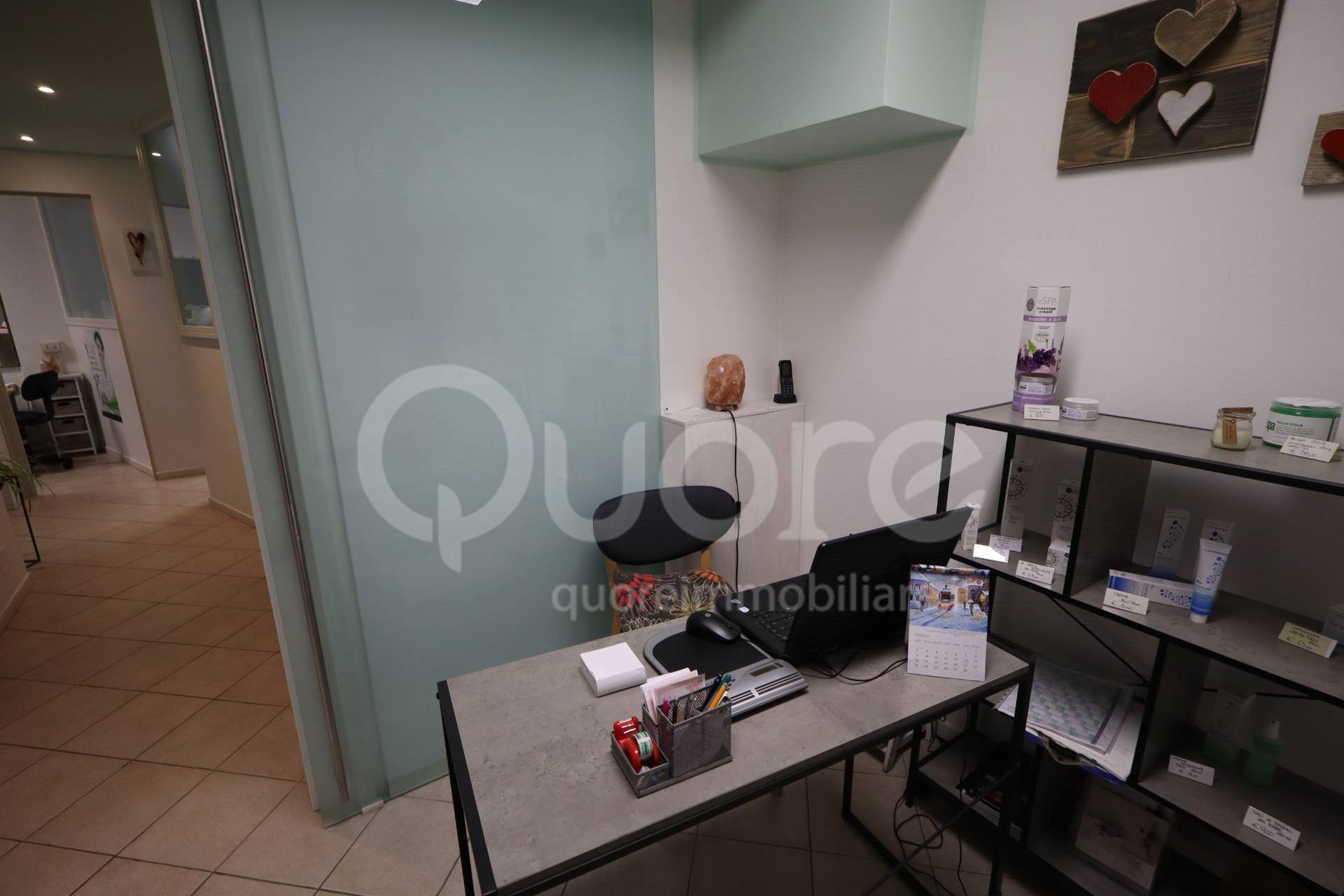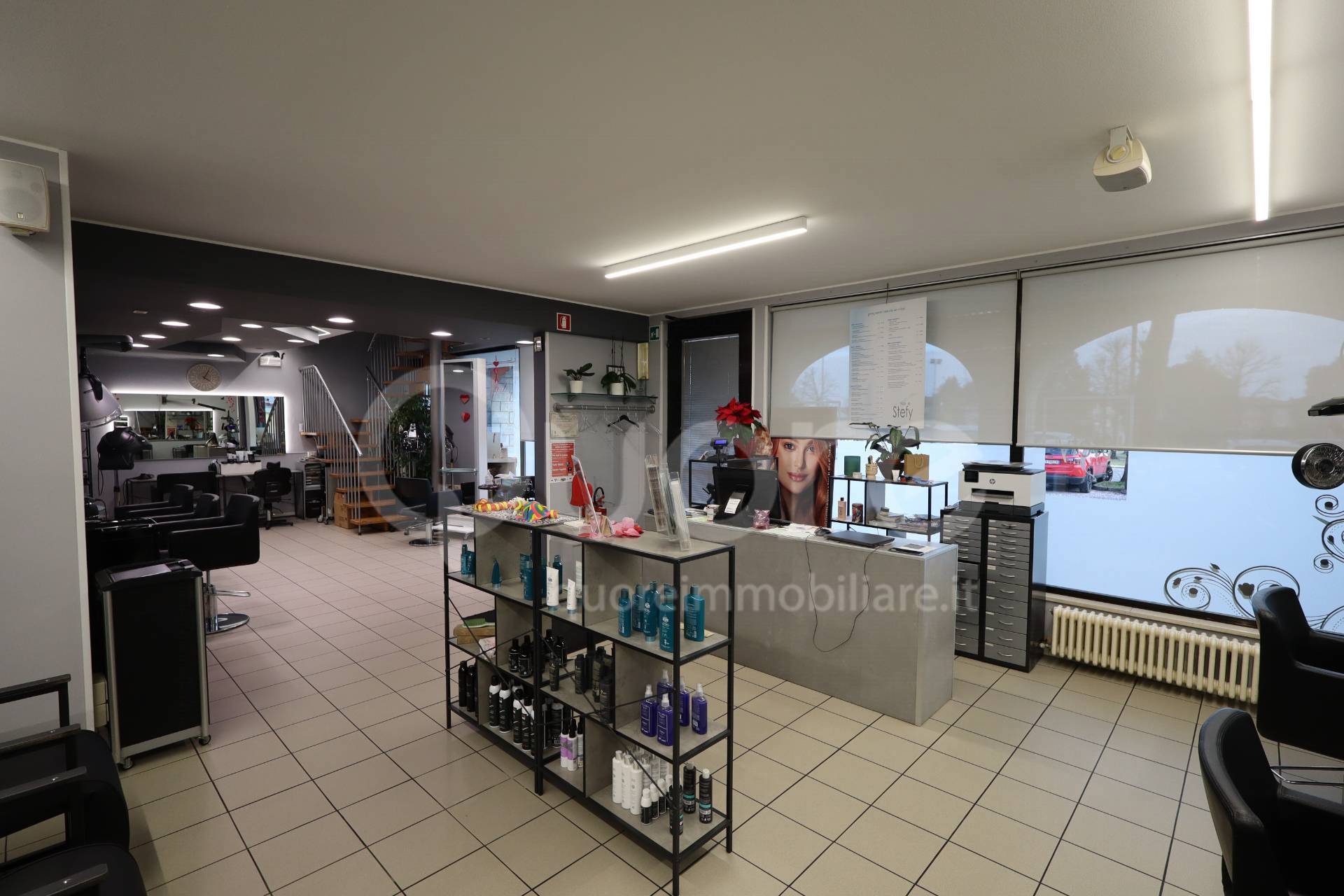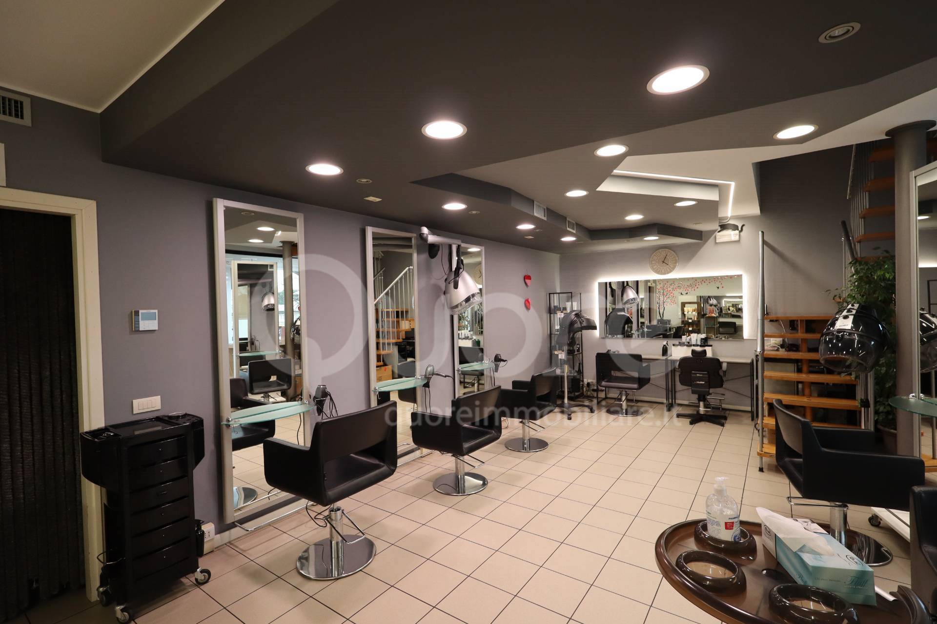 - estetica al primo piano di circa 55 mq composta da sei postazioni eseguite in cartongesso e bagno.