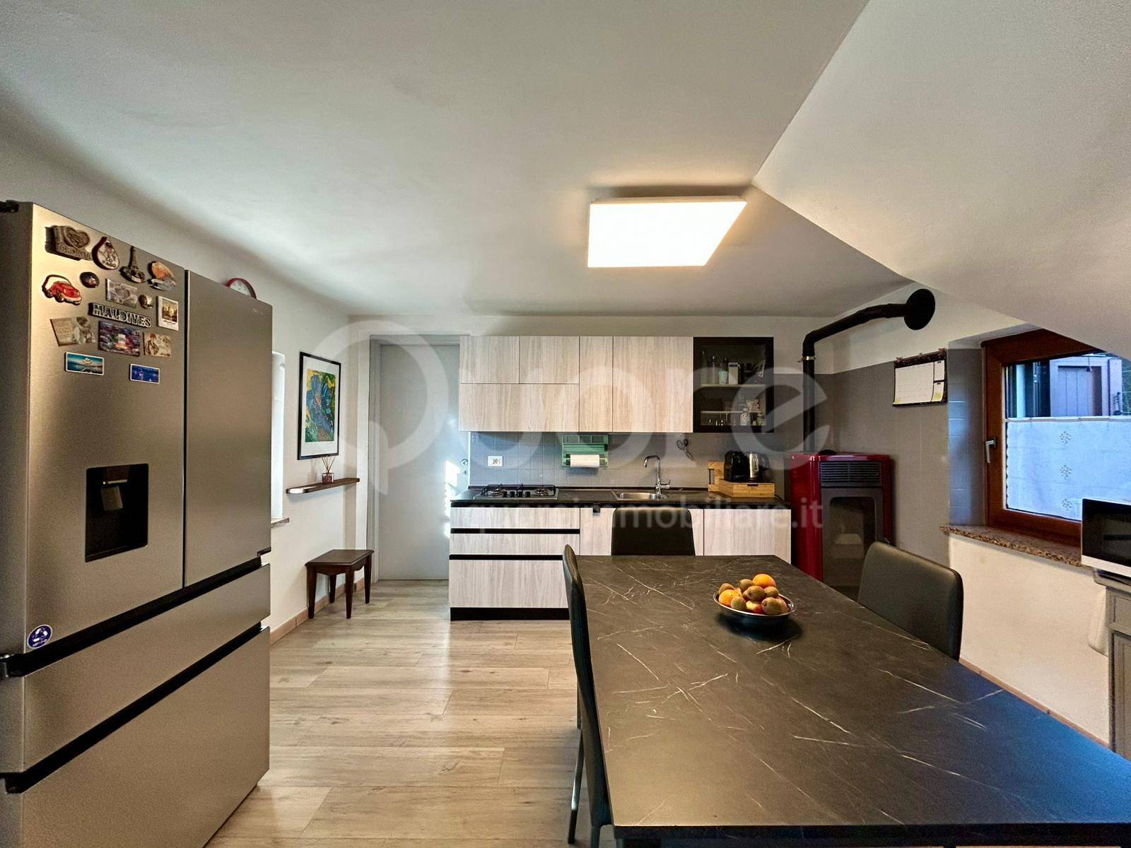 L’ingresso si apre direttamente sul soggiorno, un ambiente raccolto e accogliente che introduce alla zona giorno. La cucina รจ bella spaziosa e abitabile, dove trova comodamente posto anche la zona pranzo, perfetta per la vita quotidiana e per accogliere amici e familiari.