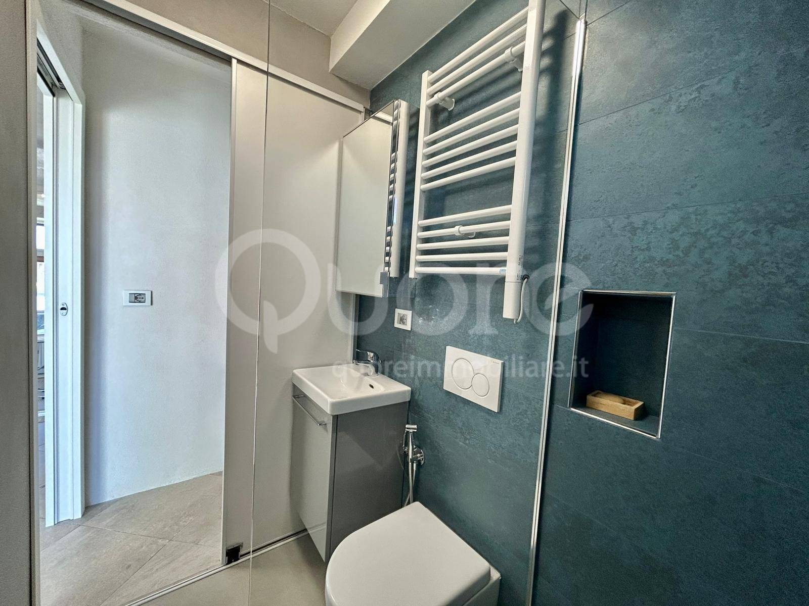 Da qui si accede direttamente alla terrazza, uno spazio esterno intimo e piacevole, ideale per una colazione all’aperto o per rilassarsi a fine giornata. Adiacente alla cucina si trova il secondo bagno, anch’esso completo di doccia, pratico e curato nei dettagli.