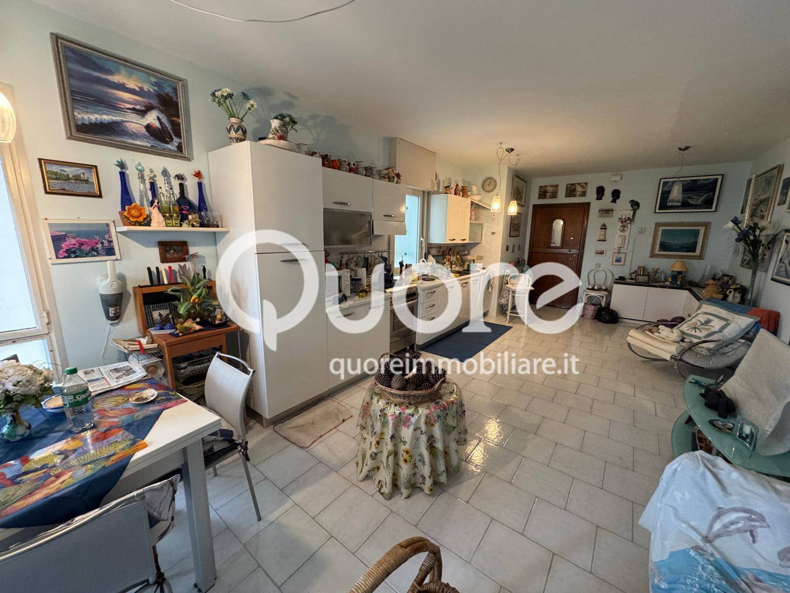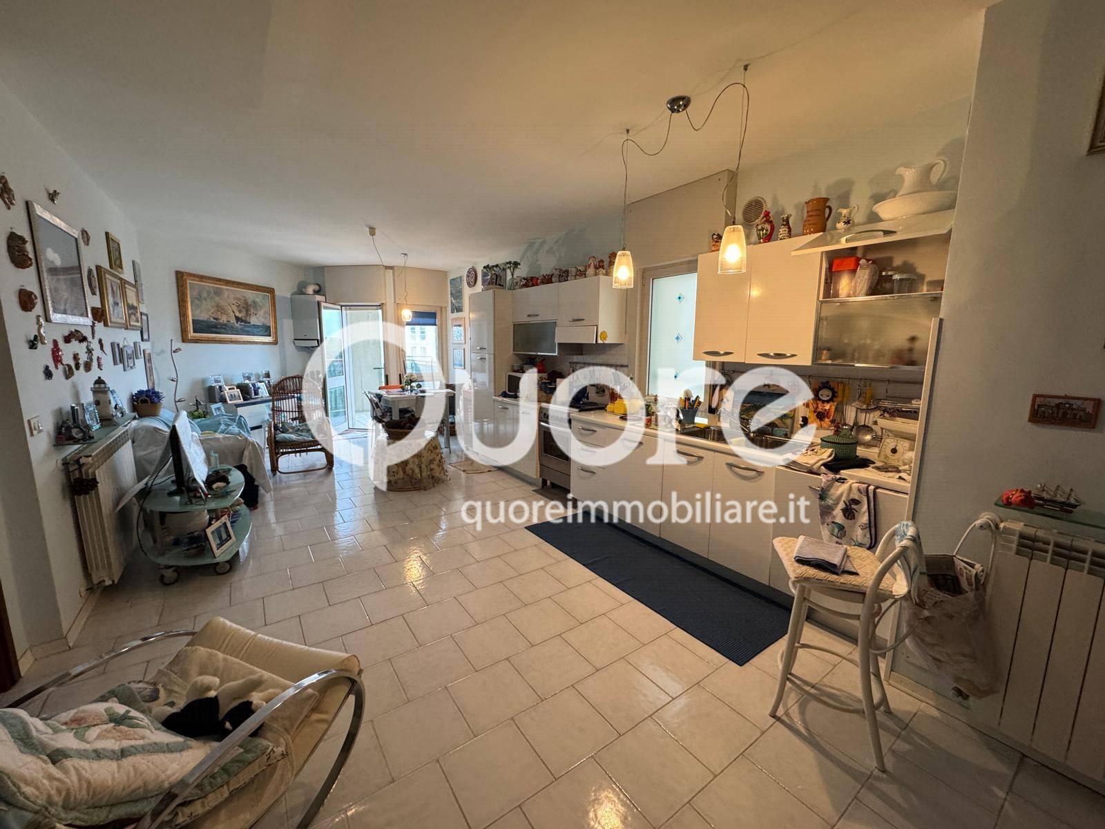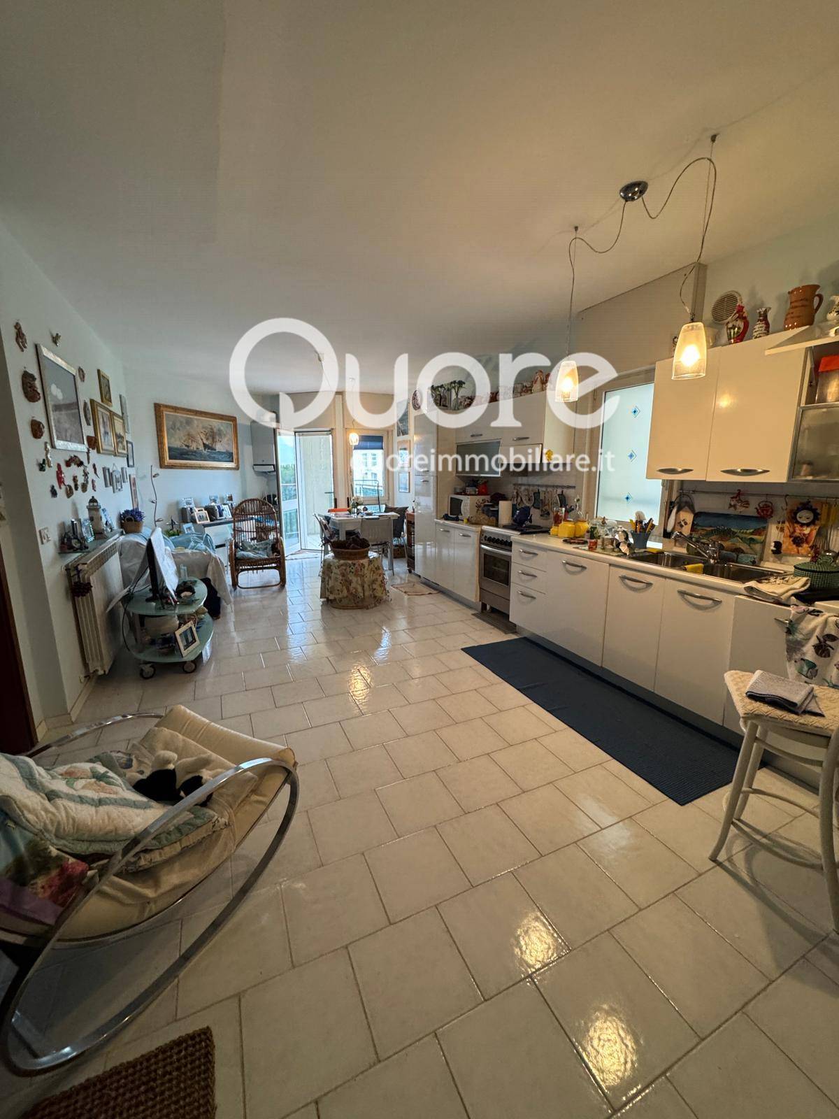 Appartamento al sesto piano con ingresso con ampio soggiorno e cucina a vista, uscita su terrazza abitabile con parziale vista mare, zona notte composta da camera matrimoniale e due camere singole, due bagni finestrati.