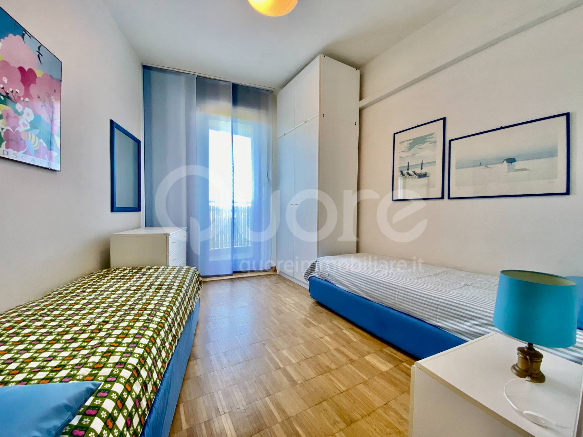 L’appartamento, ubicato al 6° piano, è composto da: ingresso, ampia e luminosa zona giorno open space con cucina a vista, terrazzo con vista panoramica sulla pineta e sul mare. Zona notte composta da disimpegno, camera da letto matrimoniale con terrazzo, camera da letto doppia con terrazzo, bagno finestrato con box doccia, cameretta con bagno privato. Dotato di impianto di climatizzazione in zona giorno e in zona notte. Viene venduto completo di arredo.