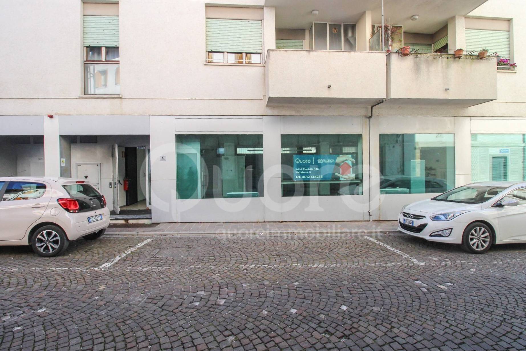 Tarcento. In centro negozio/ufficio vetrinato di 240 mq con seminterrato e garage.