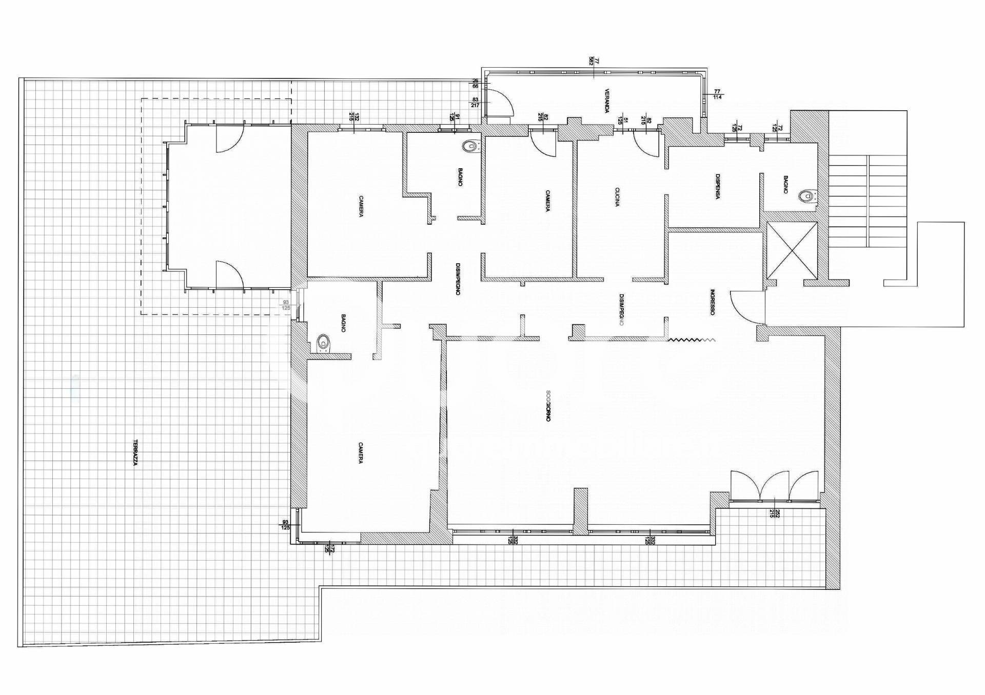 Superfici indicative: appartamento 170 mq terrazzo 160 mq, veranda 7 mq, autorimessa 25 mq cantina 12 mq e posto auto