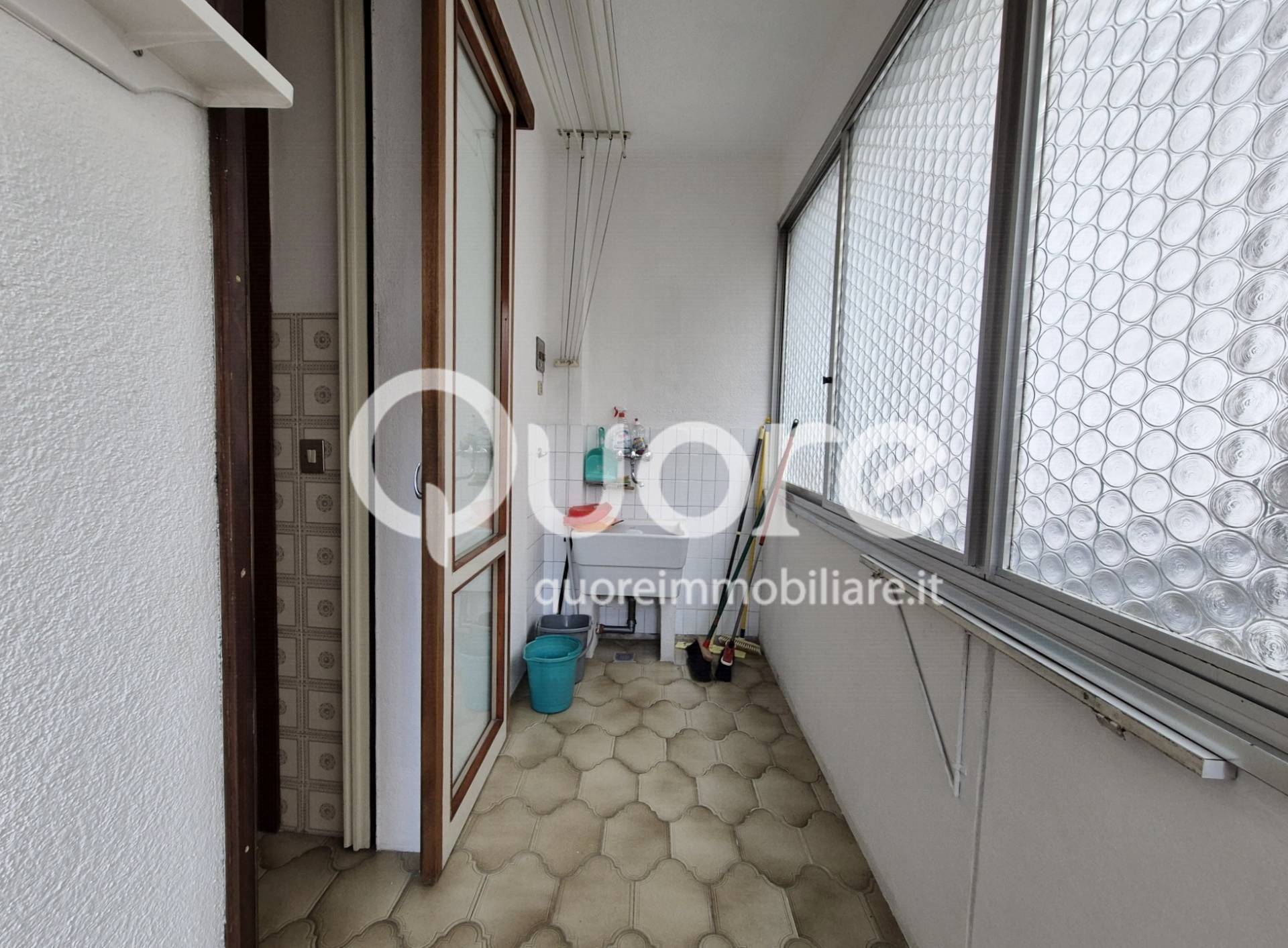 L’abitazione si apre su un ingresso ampio e accogliente, prosegue con una cucina abitabile con terrazza verandata e un luminoso soggiorno con uscita su una seconda terrazza affacciata sui giardini pubblici. La zona notte è ben separata e comprende due camere matrimoniali, una camera singola e un bagno spazioso, con possibilità di realizzare un secondo bagno finestrato.