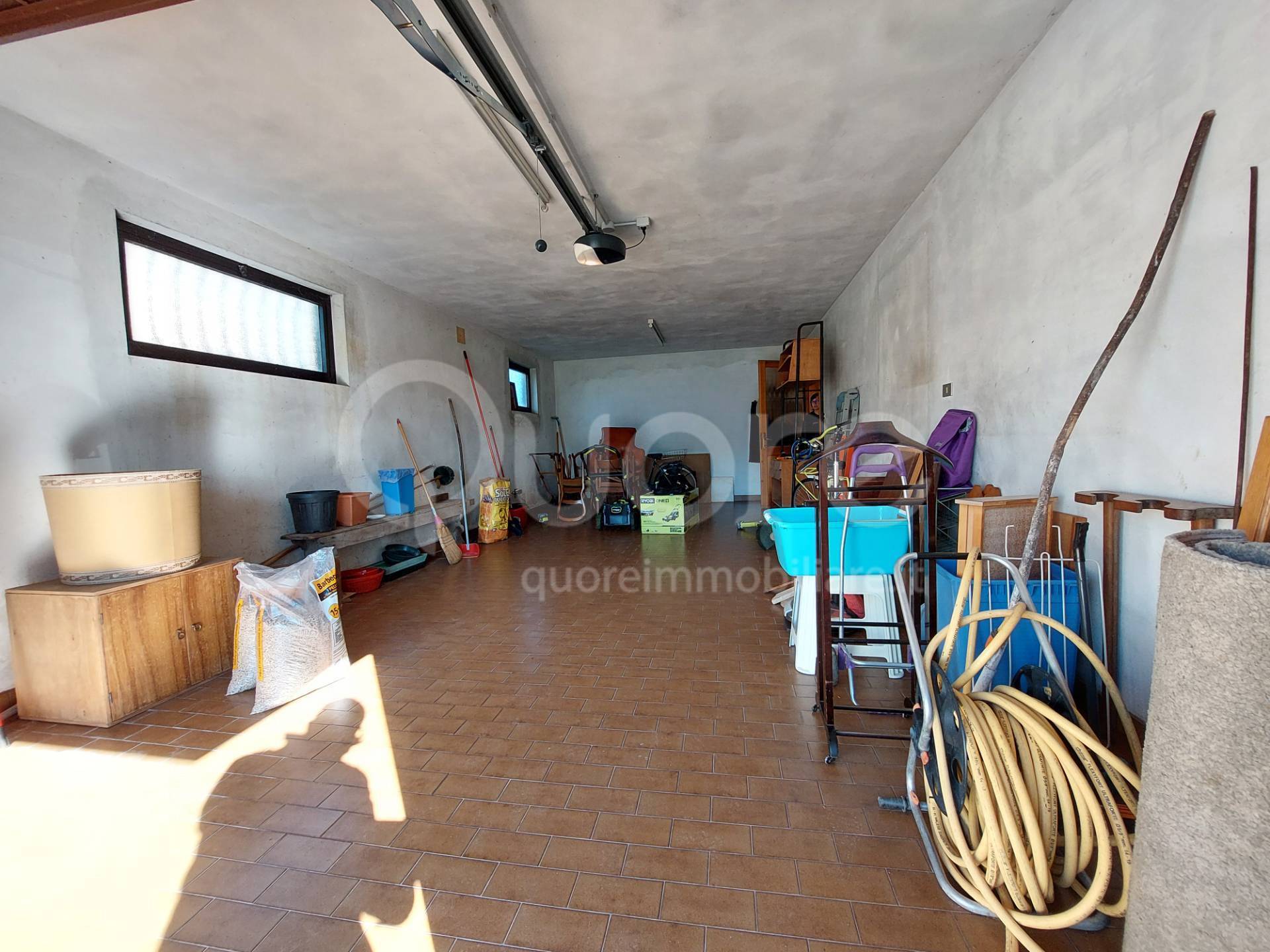 Il piano seminterrato, di pari metratura, offre ambienti versatili: una cantina, una stanza ideale come taverna o sala hobby, una lavanderia con bagno, la centrale termica e un garage molto ampio (8,30 x 4,00 m), raggiungibile tramite scivolo carrabile e affiancato da diversi posti auto esterni.